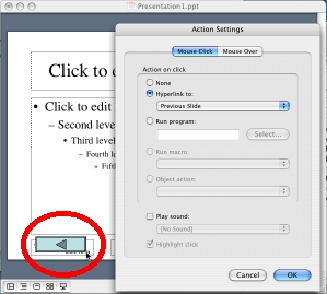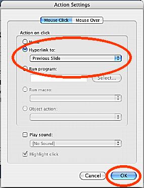 5. Make sure that the "hyperlink to" says "previous slide," then click OK.